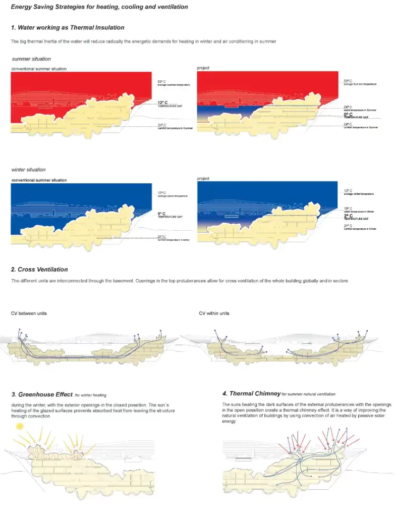 El proyecto se compone de un gran elemento semienterrado que funciona como contenedor de agua. Dentro de esta estructura se encuentran tres tríos de edificios, parcialmente sumergidos e intercomunicados, que albergan la mayor parte del programa del museo. La intrincada geometría de estos volúmenes actuará, con el tiempo, como estructura ósea para la formación de un arrecife de coral.